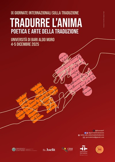 Il 4 e il 5 dicembre, presso l’Università degli studi di Bari Aldo Moro, si terrà la nona edizione delle Giornate internazionali sulla Traduzione dal titolo “Tradurre l’anima: poetica e arte della traduzione”.